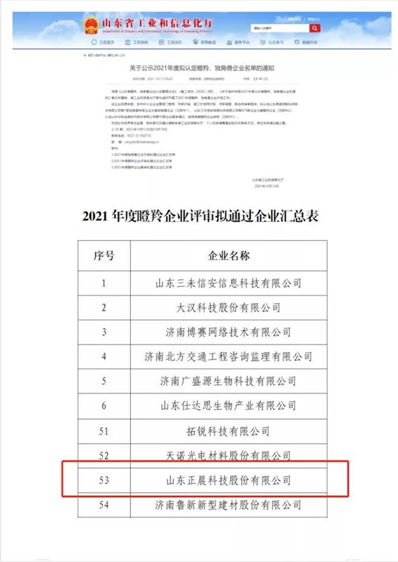 正晨股份獲評(píng)2021年度山東省瞪羚企業(yè)