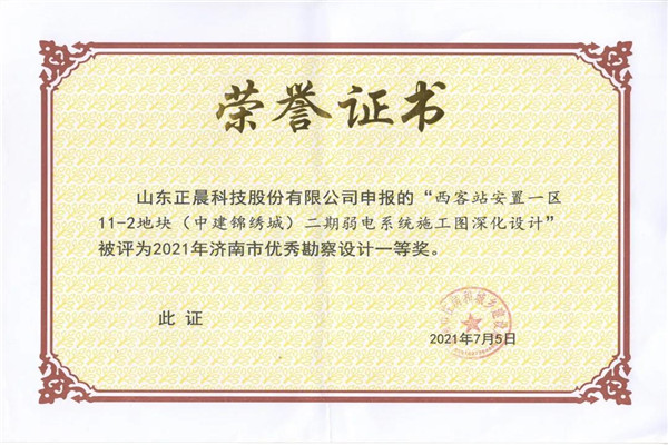 近日,2021年度濟(jì)南市優(yōu)秀工程勘察設(shè)計(jì)獎評選結(jié)果揭曉,山東正晨科技股份有限公司憑借西客站安置一區(qū)11-2地塊(中建錦繡城)設(shè)計(jì)項(xiàng)目及中垠雅苑設(shè)計(jì)項(xiàng)目分別榮獲濟(jì)南市優(yōu)秀工程勘察設(shè)計(jì)一等獎及二等獎。