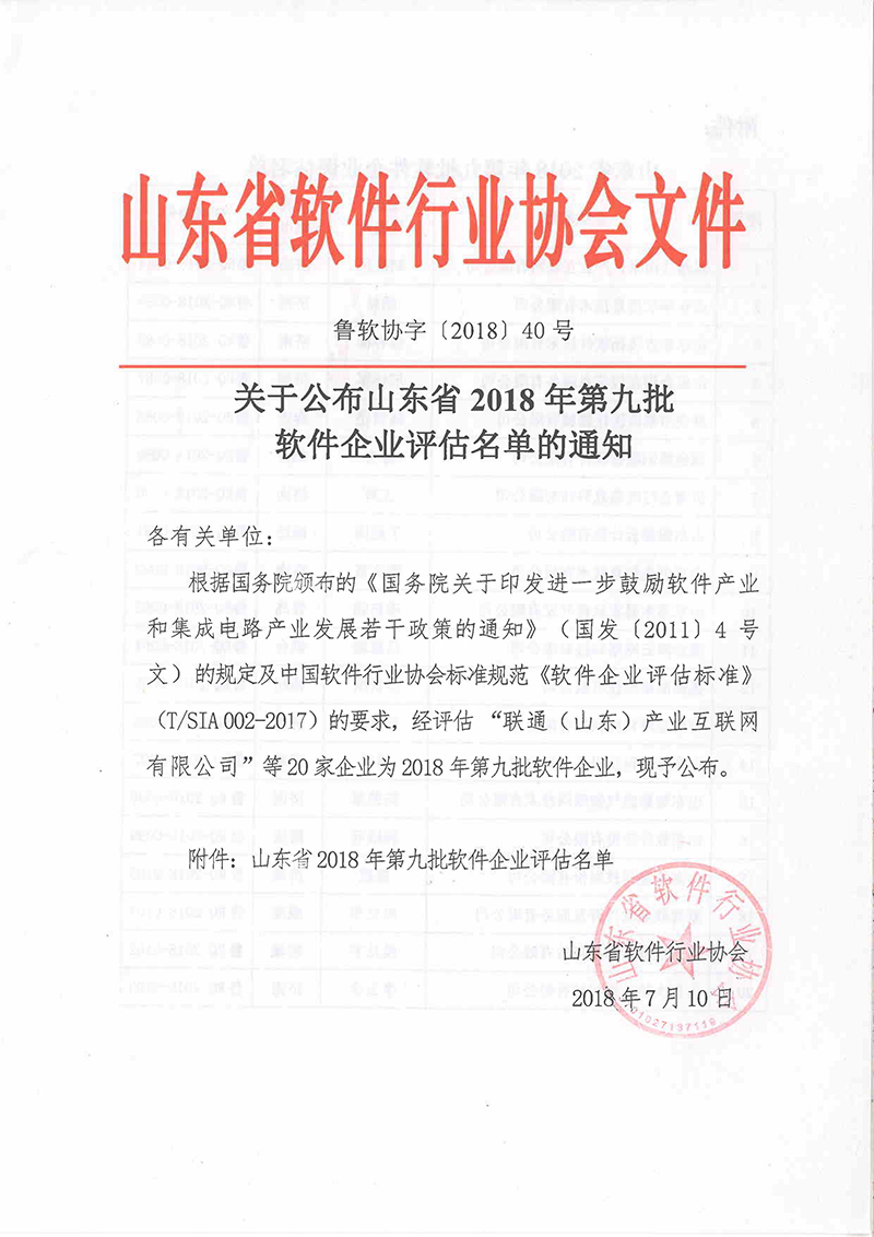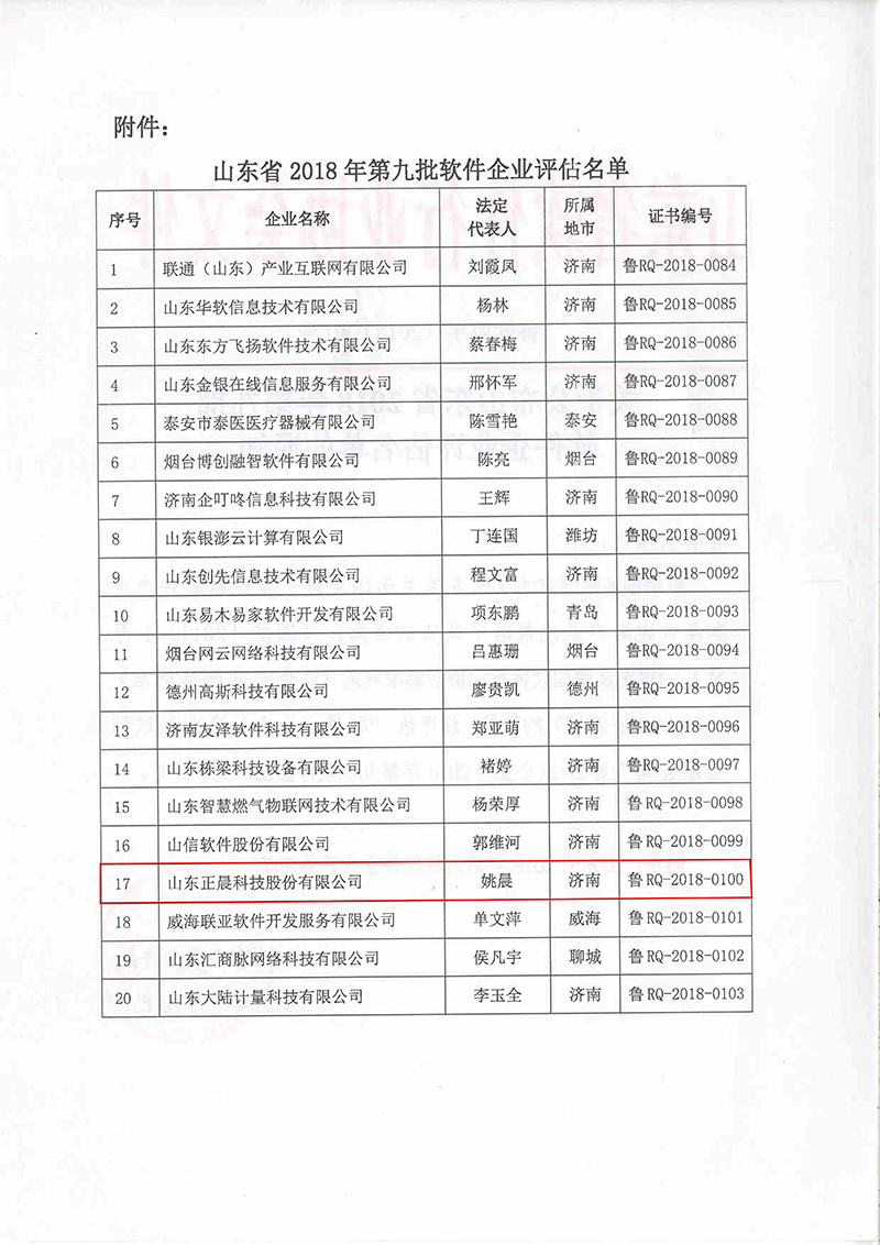 近期,根據(jù)國務(wù)院頒布的《國務(wù)院關(guān)于印發(fā)進(jìn)一步鼓勵(lì)軟件產(chǎn)業(yè)和集成電路產(chǎn)業(yè)發(fā)展若干政策的通知》的規(guī)定及中國軟件行業(yè)協(xié)會(huì)標(biāo)準(zhǔn)規(guī)范《軟件企業(yè)評(píng)估標(biāo)準(zhǔn)》的要求,經(jīng)過山東省軟件協(xié)會(huì)的嚴(yán)格審查,山東正晨科技股份有限公司通過了軟件企業(yè)認(rèn)定的嚴(yán)格評(píng)審程序,被授予山東省2018年第九批軟件企業(yè)。