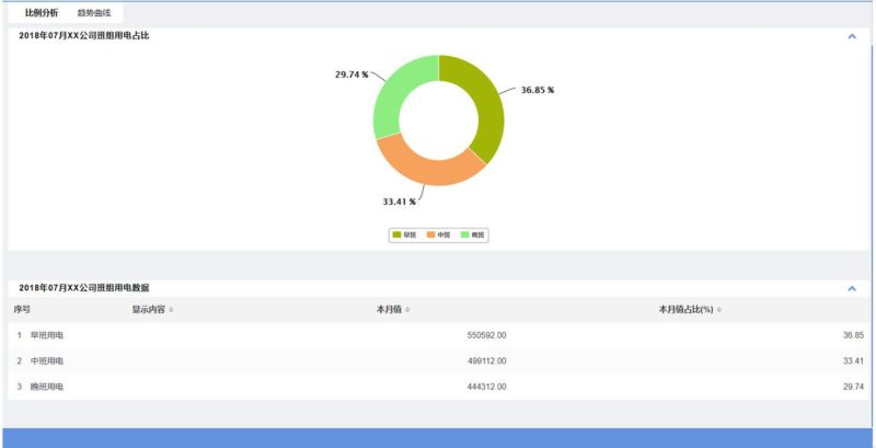 從界面中我們可以看到,界面中的內(nèi)容包含:班組用能排名、班組用能占比、班組用能數(shù)據(jù)列表。