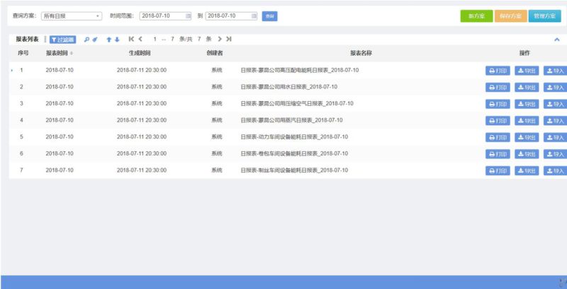 系統(tǒng)提供報表自定義工具,用戶可根據(jù)管理的需求自定義報表內(nèi)容、格式、生成周期、導出/發(fā)送規(guī)則。報表內(nèi)容包括所有區(qū)域能耗、設備能耗數(shù)據(jù),以及能源消費機構(gòu)等。可根為管理決策和能源審計提供數(shù)據(jù)支撐。