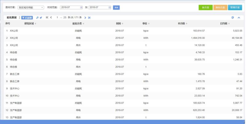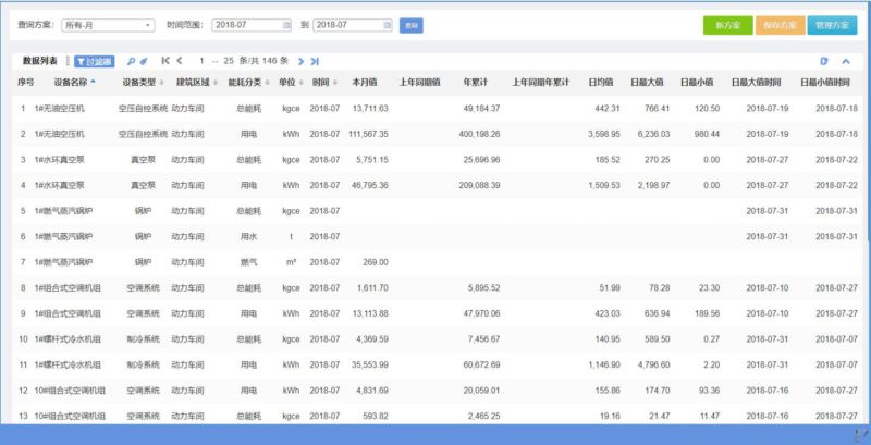 功能介紹:此功能主要滿足用戶對設備的歷史能耗進行多角度查詢的需要,允許用戶自行定制查詢條件,并支持自定義查詢方案的編輯,手動錄入和自動計算的數(shù)據(jù)都在查詢的范圍之內(nèi)。