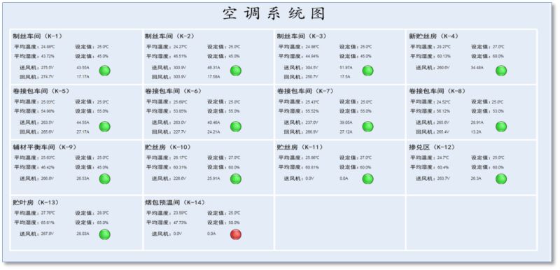 功能介紹:作為工控系統(tǒng)的集中監(jiān)控,展示現(xiàn)場各工控系統(tǒng)的監(jiān)控畫面及參數(shù)。包括【空壓控制系統(tǒng)】【制冷控制系統(tǒng)】【空調(diào)控制系統(tǒng)】。