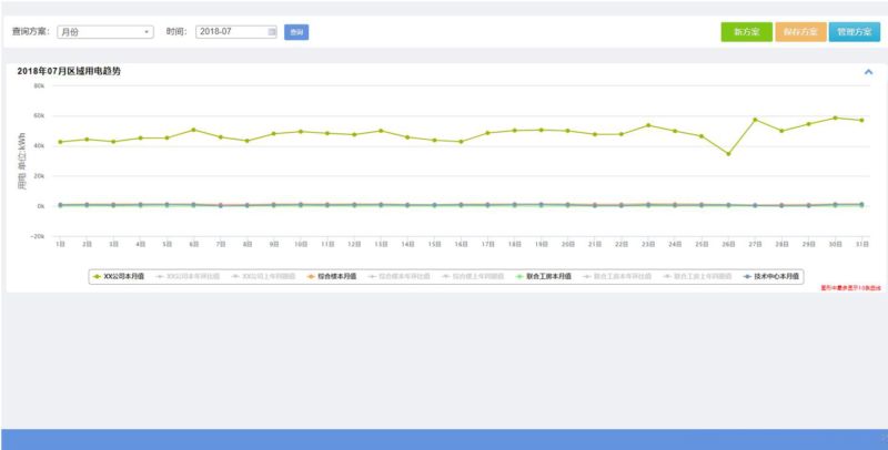 功能介紹:滿足用戶對企業(yè)各區(qū)域能耗的歷史數(shù)據(jù)進行多角度查詢的需要,允許用戶自行定制查詢條件(包括自定義區(qū)域、自定義能耗類型、自定義時間頻率、自定義數(shù)據(jù)類型等),并支持自定義查詢方案的編輯,手動錄入和自動計算的數(shù)據(jù)都在查詢的范圍之內(nèi)。