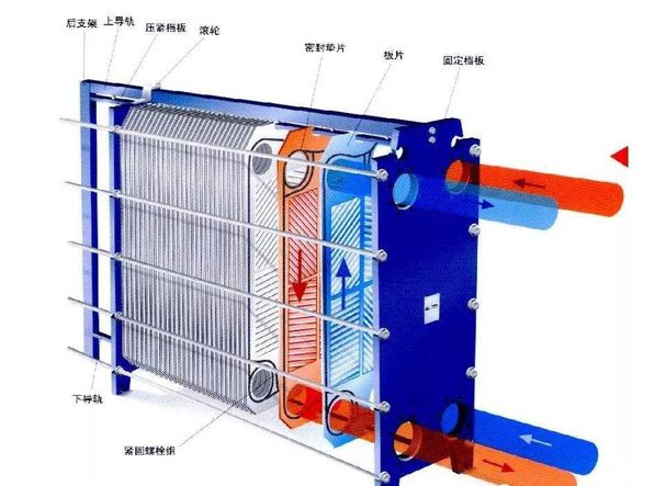 板式換熱器是由一系列具有一定波紋形狀的金屬片疊裝而成的一種新型高效換熱器。各種板片之間形成薄矩形通道,通過板片進行熱量交換。板式換熱器是液—液、液—汽進行熱交換的理想設備。它具有換熱效率高、熱損失小、結(jié)構(gòu)緊湊輕巧、占地面積小、安裝清洗方便、應用廣泛、使用壽命長等特點。在相同壓力損失情況下,其傳熱系數(shù)比管式換熱器高3-5倍,占地面積為管式換熱器的三分之一,熱回收率可高達90%以上。