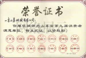 山東省第九屆消費(fèi)者滿意單位