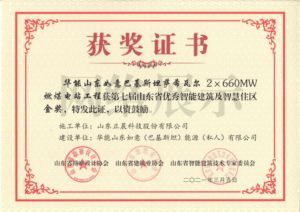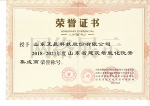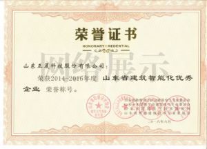 山東省智能建筑優(yōu)秀企業(yè)證書